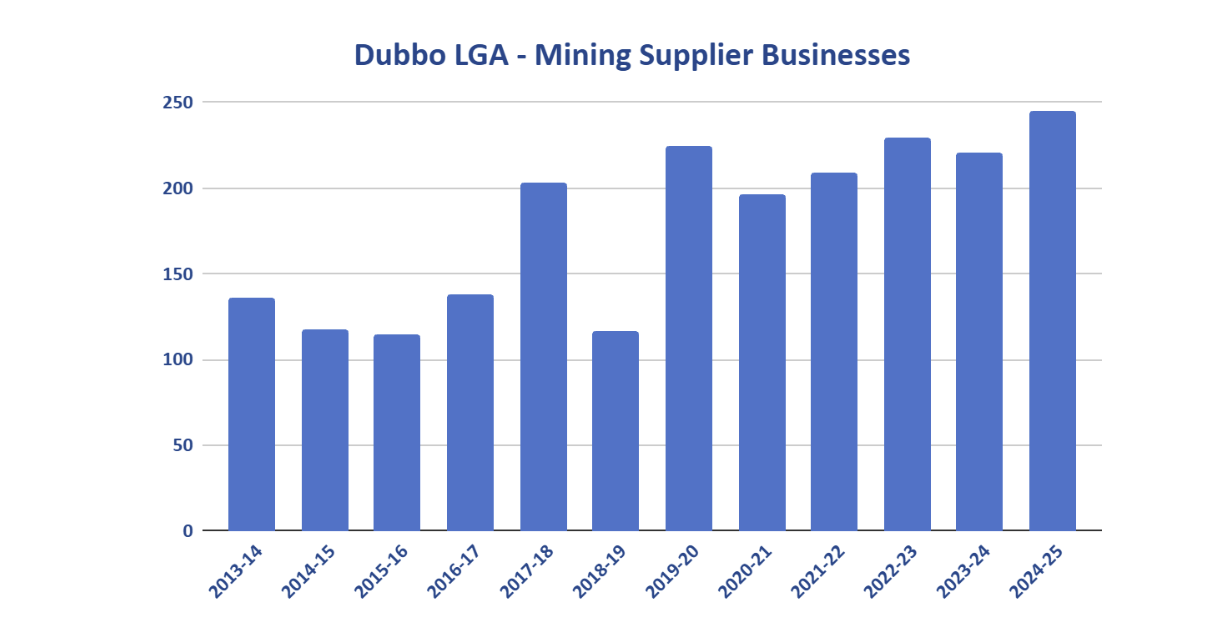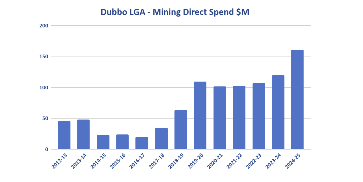 The more than $160 million of direct mining spending in the Dubbo LGA last financial year included over $47 million on wages and salaries, and $114 million for goods and services purchased from over 245 mining local supplier businesses.